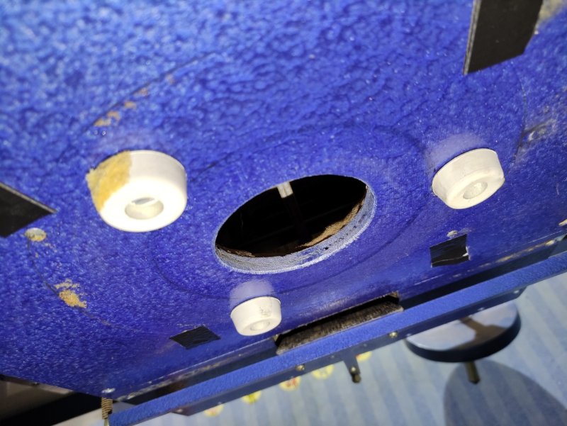 - sous la table, après avoir enlevé le cylindre qui contient le moteur d'origine :